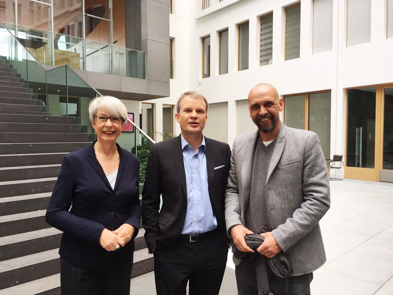 In guter Gesellschaft: Gudrun Ahlers (links) mit TK-Chef Dr. Jens Baas (Mitte) und Ex-Fußballtrainer und Unternehmer Holger Stanislawski (links) bei der Vorstellung der TK-Stressstudie 2016.