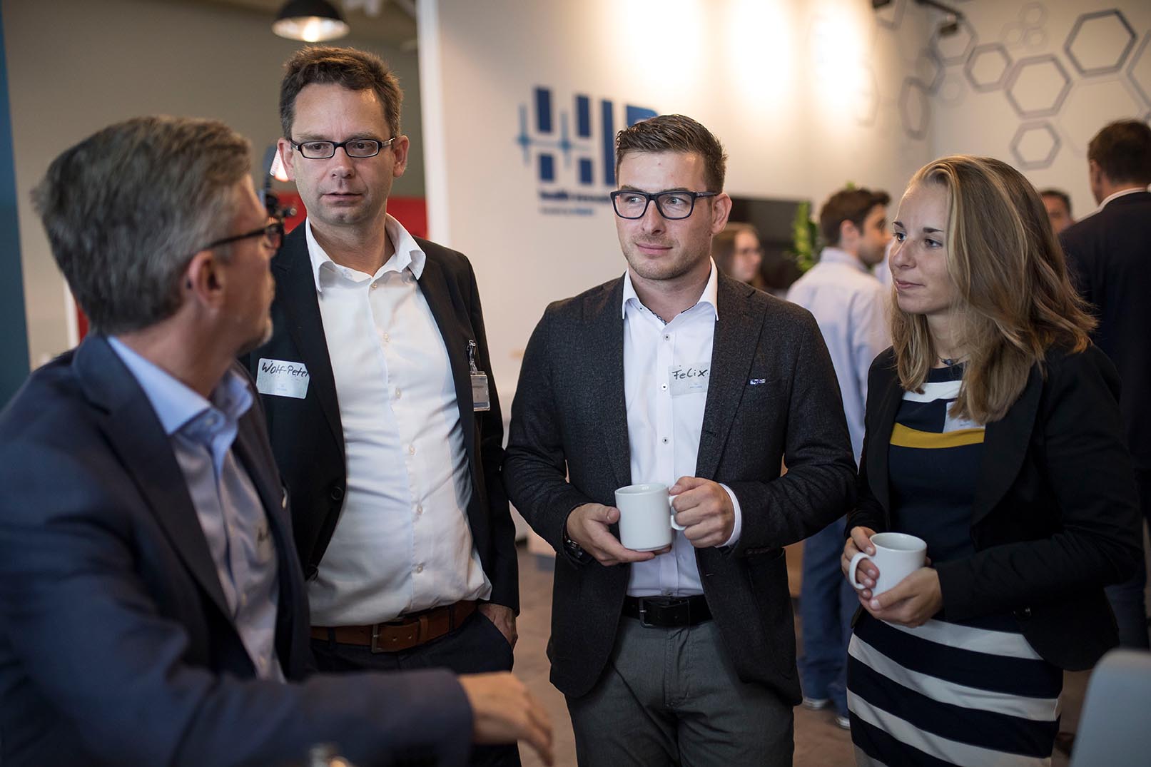 Vor dem Treffen mit den beiden Vorständen ist Felix aber nicht mehr so nervös: „In der letzten Zeit haben wir viele Chefs von großen Unternehmen getroffen. Irgendwann merkt man, dass das auch nur Menschen sind, die von bestimmten Themen Ahnung haben, von anderen weniger und in ihrer Freizeit das Gleiche machen wie wir auch.“ TK-Chef Baas interessiert sich zum Beispiel sehr für digitale Produkte und die Technik dahinter. Im Gespräch mit den beiden Gründern von „Don’t Be Afraid VR“ fachsimpelt er erst einmal über die Virtual Reality-Brillen, die die beiden in ihrer virtuellen Angsttherapie einsetzen.