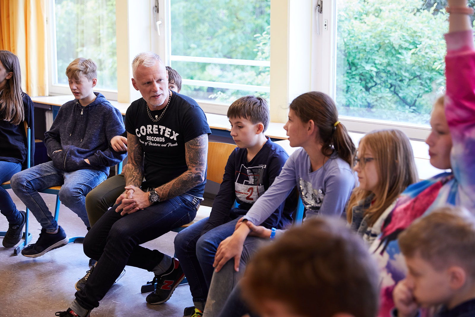 Holger „Holly“ Hülsemann im Gespräch mit der Klasse.