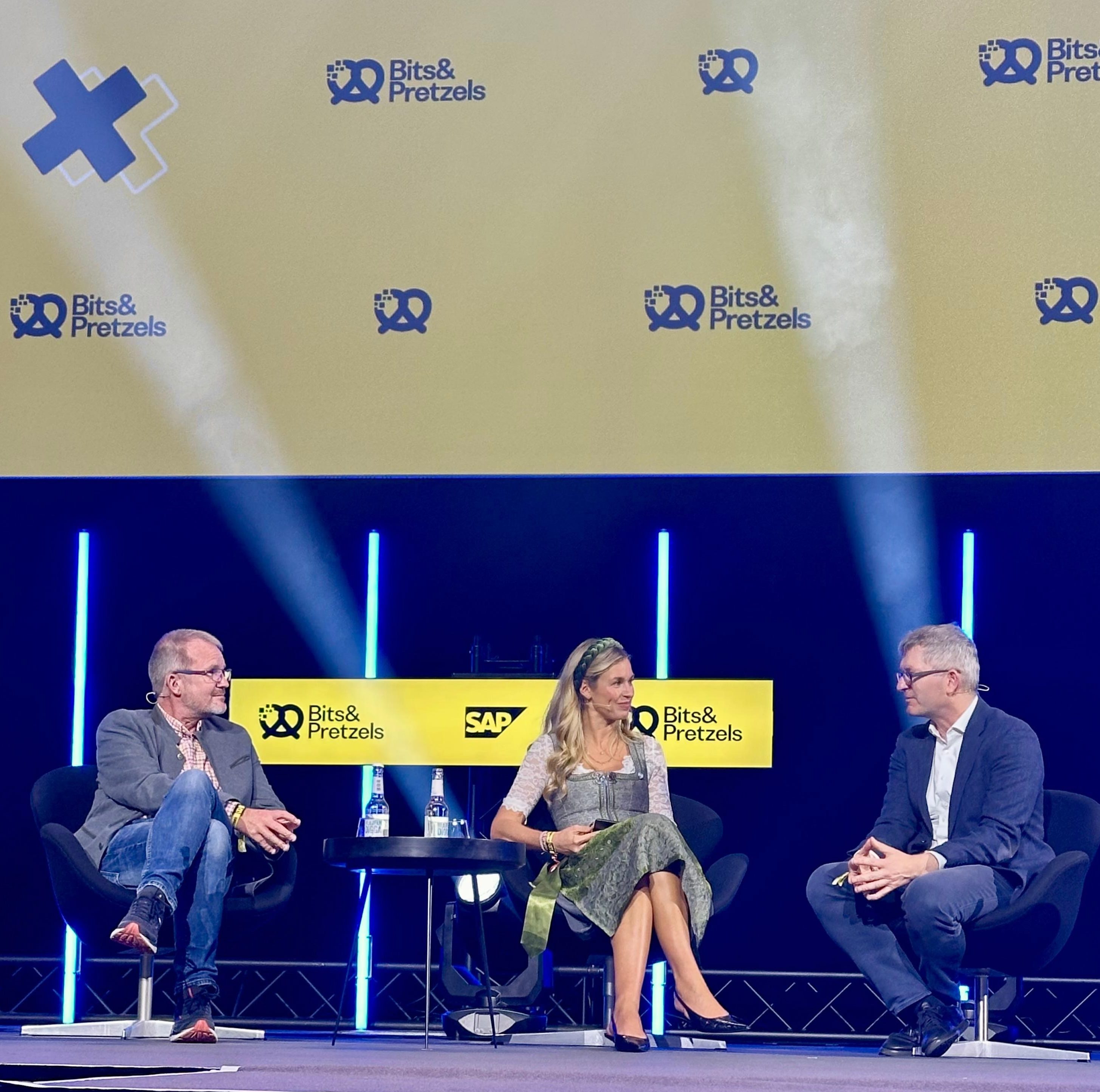Um den Hype und die Hürden des deutschen Gesundheitsmarktes ging es auch im Panel von TK-Chef Dr. Jens Baas und Prof. Dr. Helmut Schönenberger von der Technischen Universität München (TUM). Schönenberger ist Mitgründer und CEO von „UnternehmerTUM“, dem führenden europäischen Zentrum für Innovation und Gründung. Seine Leidenschaft ist es, vielversprechende Startups zum Erfolg zu führen und Menschen für Fortschritt und Unternehmertum zu begeistern. Unter der Moderation von Lara Sophie Bothur warfen sich die beiden Bühnengäste die Bälle zu, als es um die Frage ging, wie das Gesundheitswesen die Rolle als Innovationsmotor übernehmen kann. Die Antwort: Gerade jetzt kommt es auf die partnerschaftliche Zusammenarbeit zwischen Startups, etablierten Unternehmen und Krankenkassen an. Außerdem braucht es mutige (politische) Schritte, also mehr Flexibilität anstatt Regulierung, und einen starken Investoren-Markt in Europa, damit die besten Lösungen nicht beispielsweise in die USA „abwandern“. Gründerinnen und Gründern riet Dr. Baas, sich intensiv mit dem Gesundheitssystem des jeweiligen Landes zu beschäftigten und sich rechtzeitig mit Kostenträgern wie der TK zusammenzusetzen. Beide Gäste hatten eine klare Botschaft, die zur Aufbruchsstimmung der Bits & Pretzels passte: „Do what you love and don’t be afraid!“