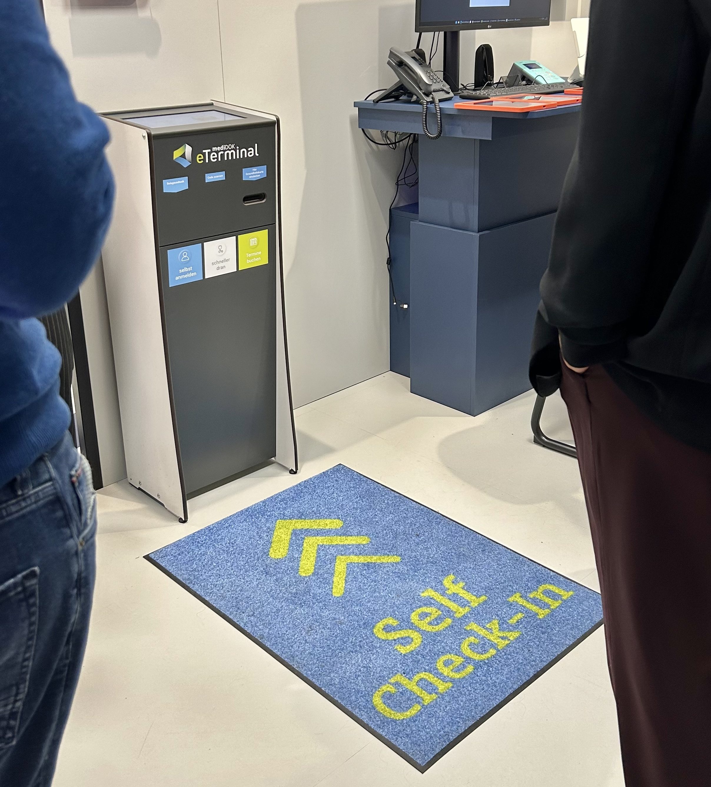 Ob am Flughafen oder im Fitnessstudio: In vielen Lebensbereichen ist selbstständiges Einchecken bereits Standard. Warum also nicht auch in der Arztpraxis? Mit dem Self-Check-In melden sich Patientinnen und Patienten selbst mit ihrer Gesundheitskarte an einem eTerminal an. Damit sind sie direkt in der Praxis registriert. Die Mitarbeitenden sehen automatisch, wer bereits wie lange im Wartezimmer sitzt, und können die Patientinnen und Patienten über das digitale System ins Labor oder das Sprechzimmer bestellen.