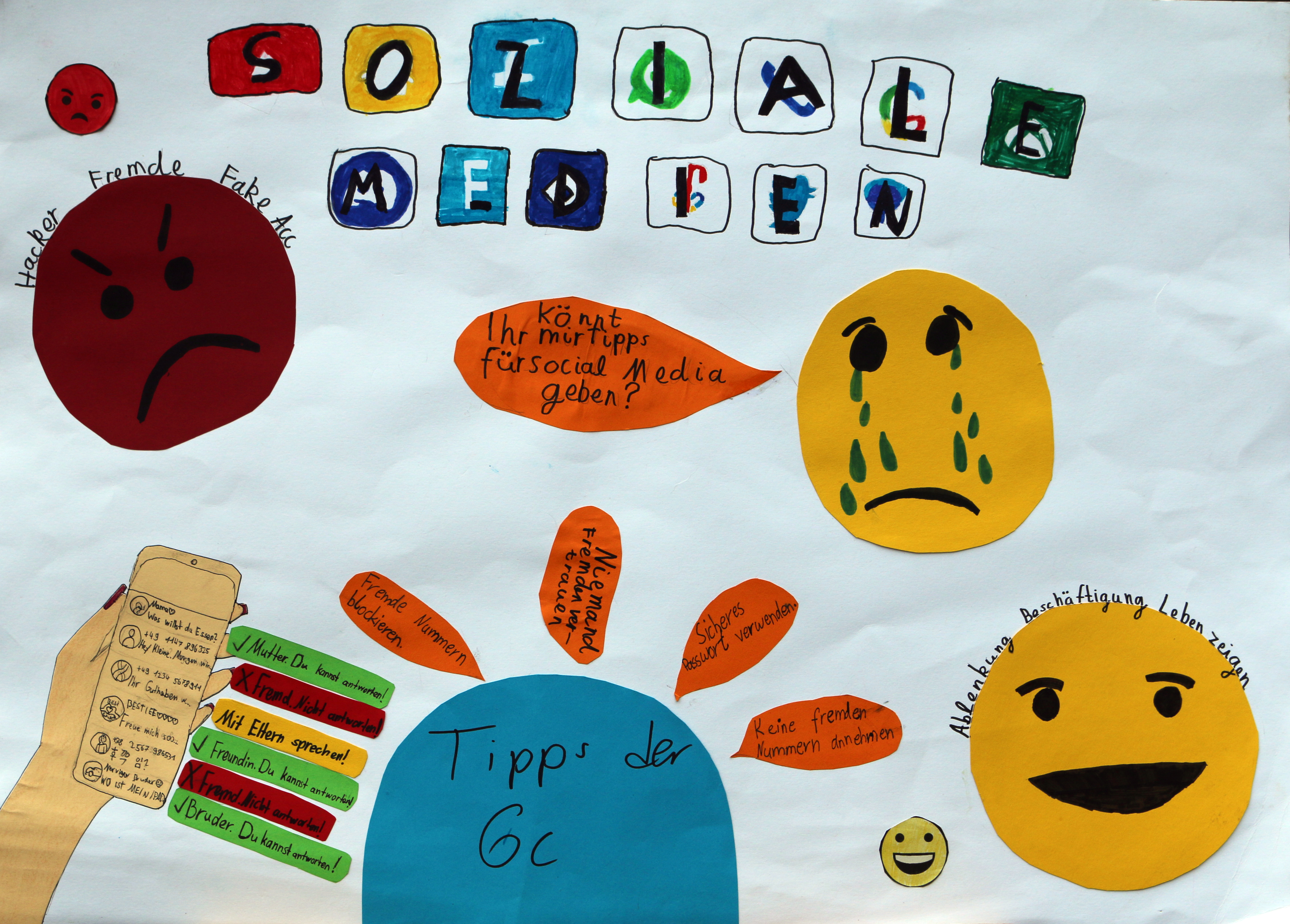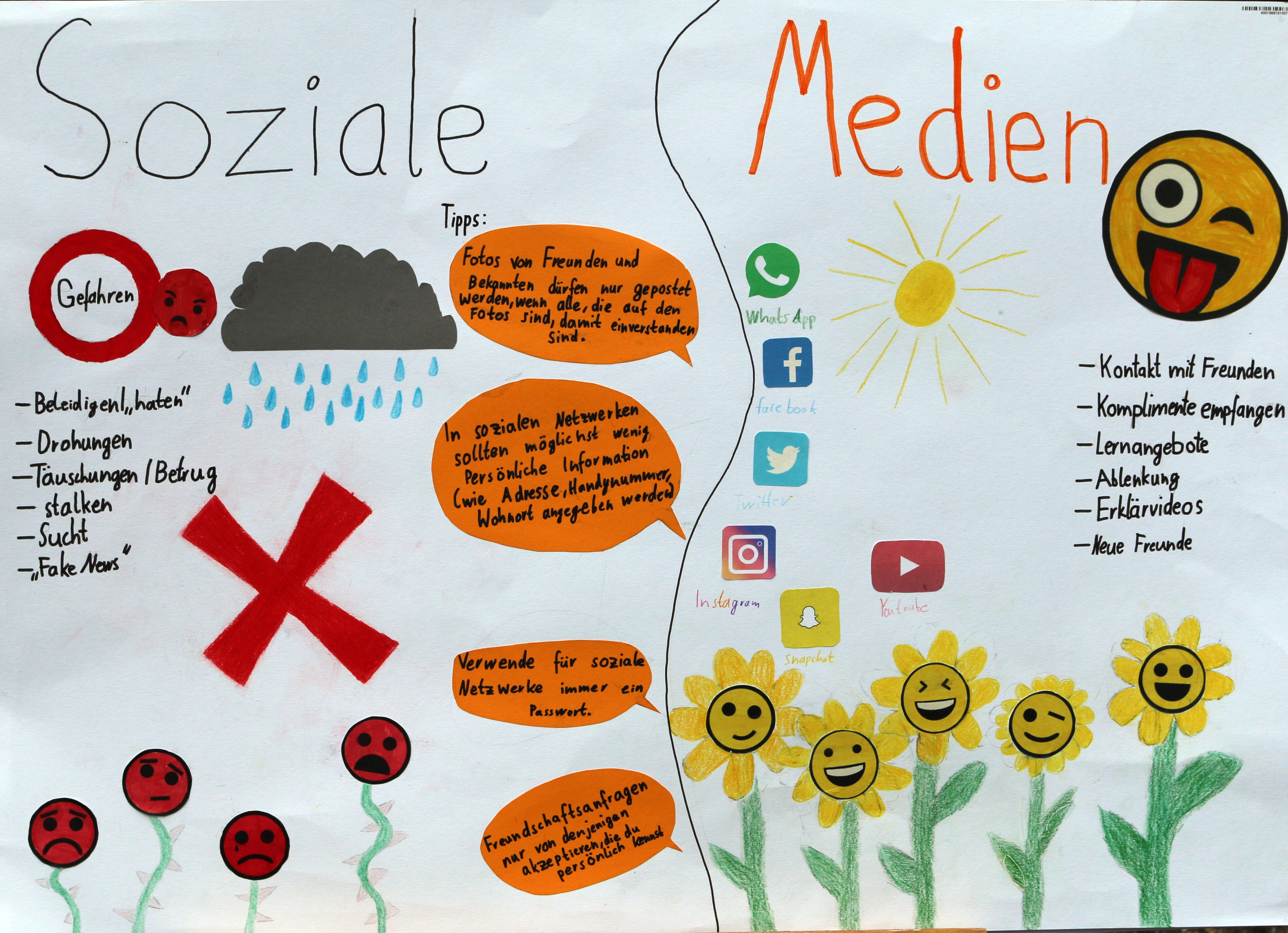 Plakate, Collagen, digitale Visualisierungen, Podcasts – die Vielfalt und Kreativität der eingereichten Beiträge war beeindruckend. Inhaltlich ging es beispielsweise um Cybermobbing, Datenschutz, Medienkompetenz und auch darum, wie eine positive Online-Kultur gestaltet werden kann. Deutlich wurde: Mobbing und Cybermobbing gehören für viele Jugendliche zum Alltag – doch sie setzen sich kritisch damit auseinander und zeigen, dass sie die Nutzung sozialer Medien längst bewusst hinterfragen.