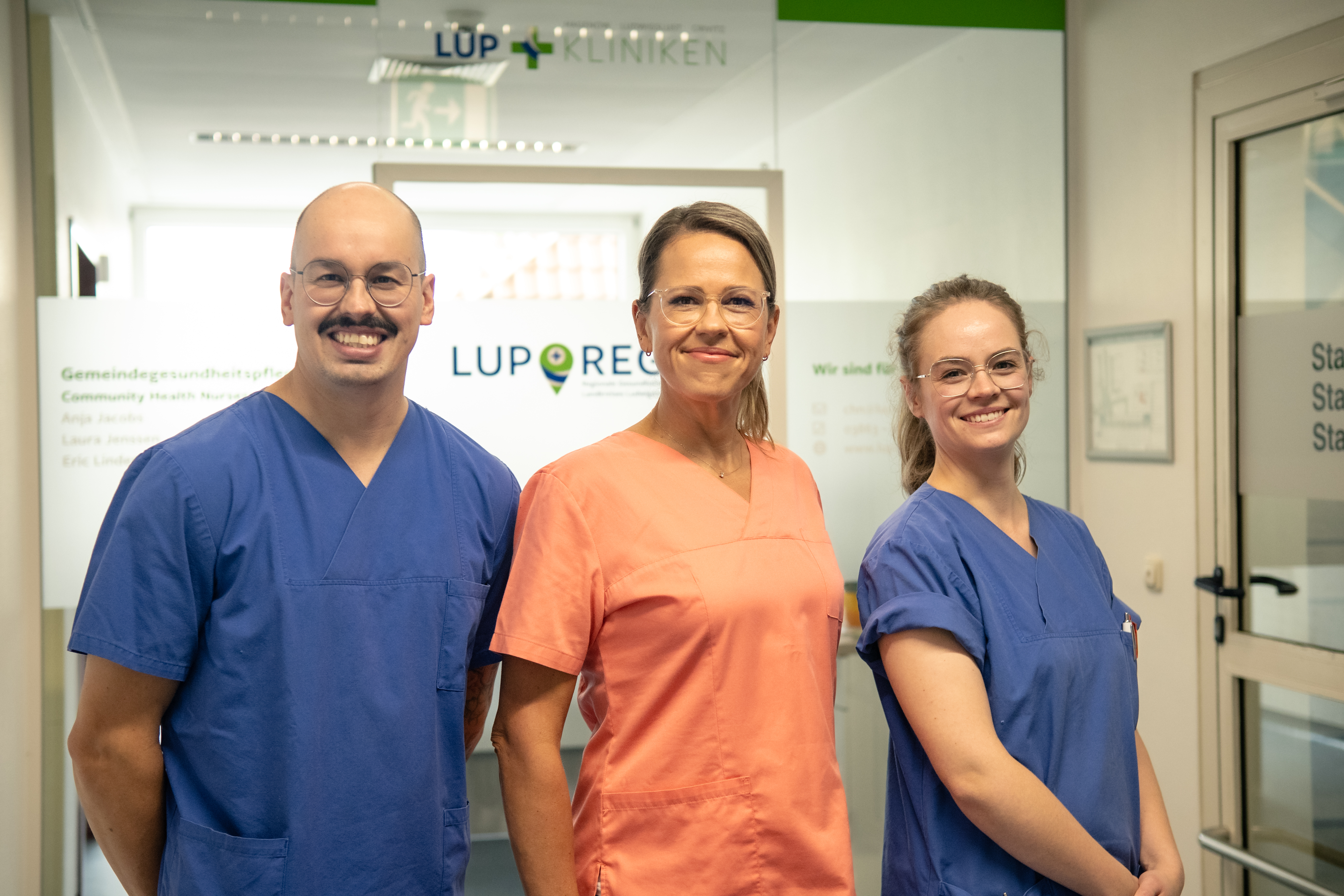 Eric Lindemann, Anja Jacobs und Laura Jenssen sind Community Health Nurses in Mecklenburg-Vorpommern.